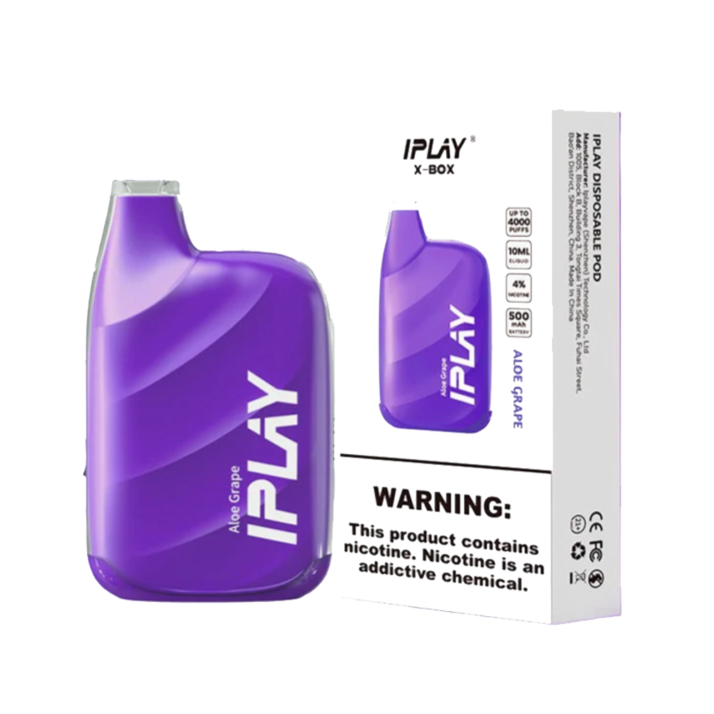 Aloe Grape (Grape/Aloe) IPLAY X-BOX is a rechargeable pre-charged disposable vape kit for new vaping enthusiasts to chase super big cloud.